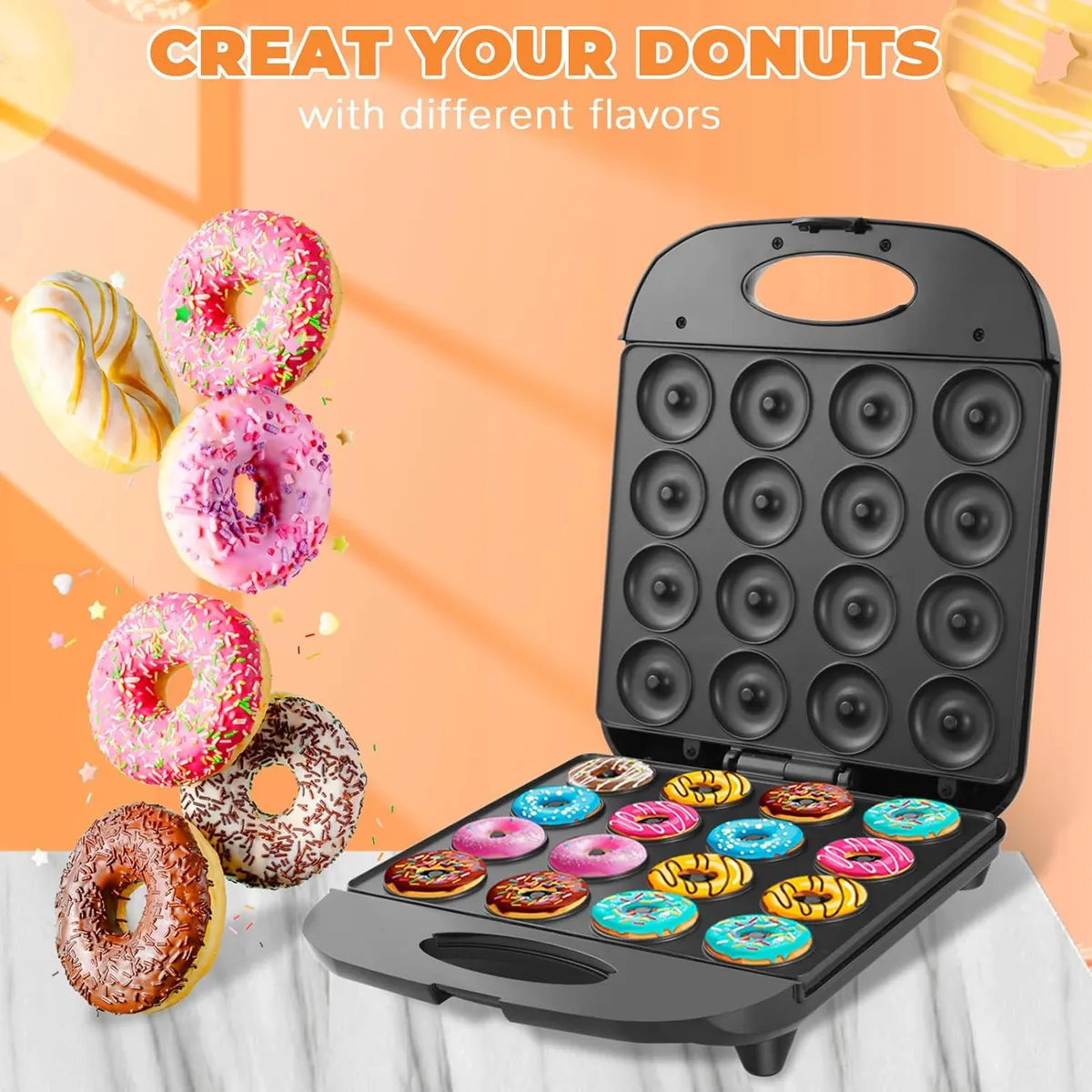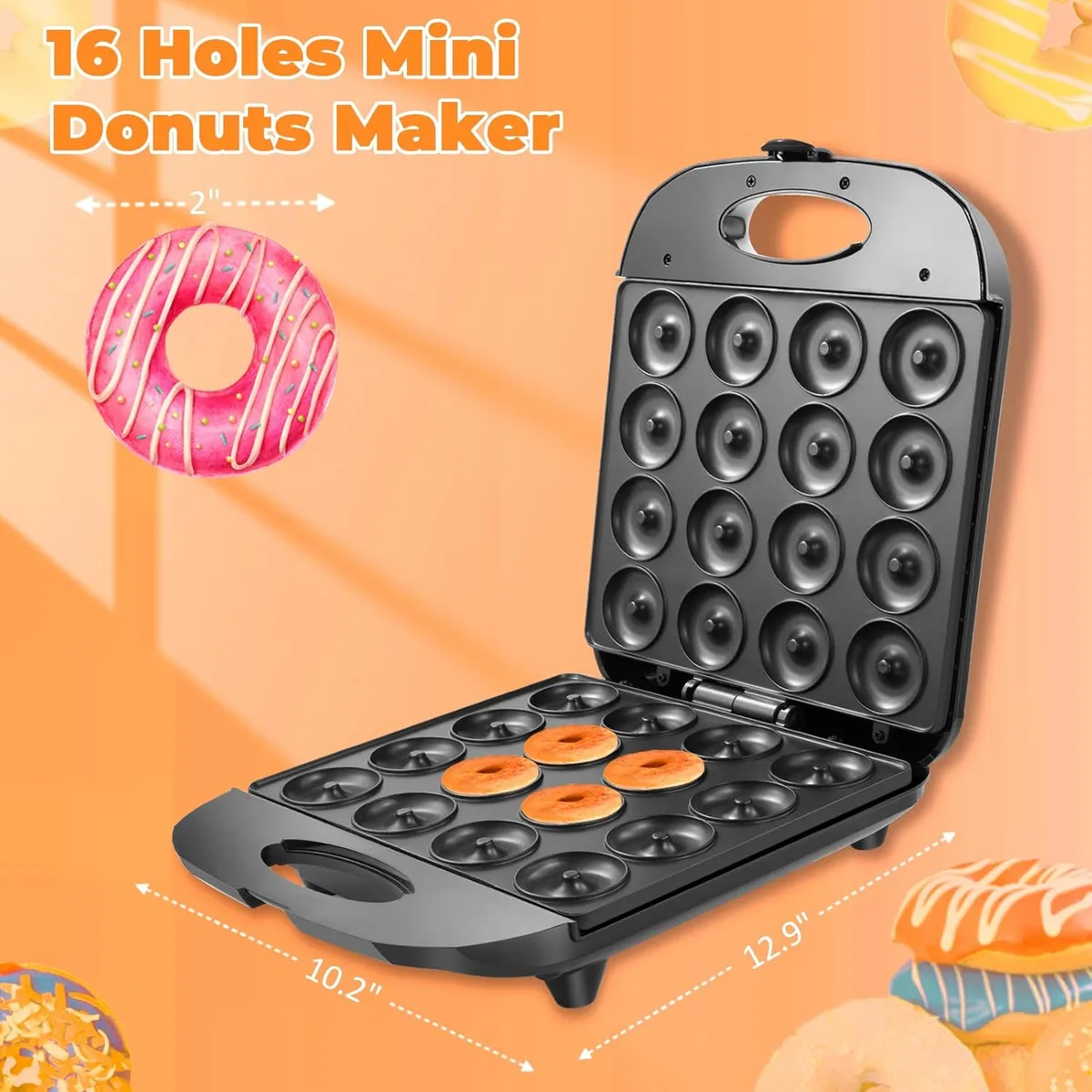 • 🍩 Capacidad para 16 mini donuts – Ideal para familias, eventos, cafeterías o negocios pequeños.